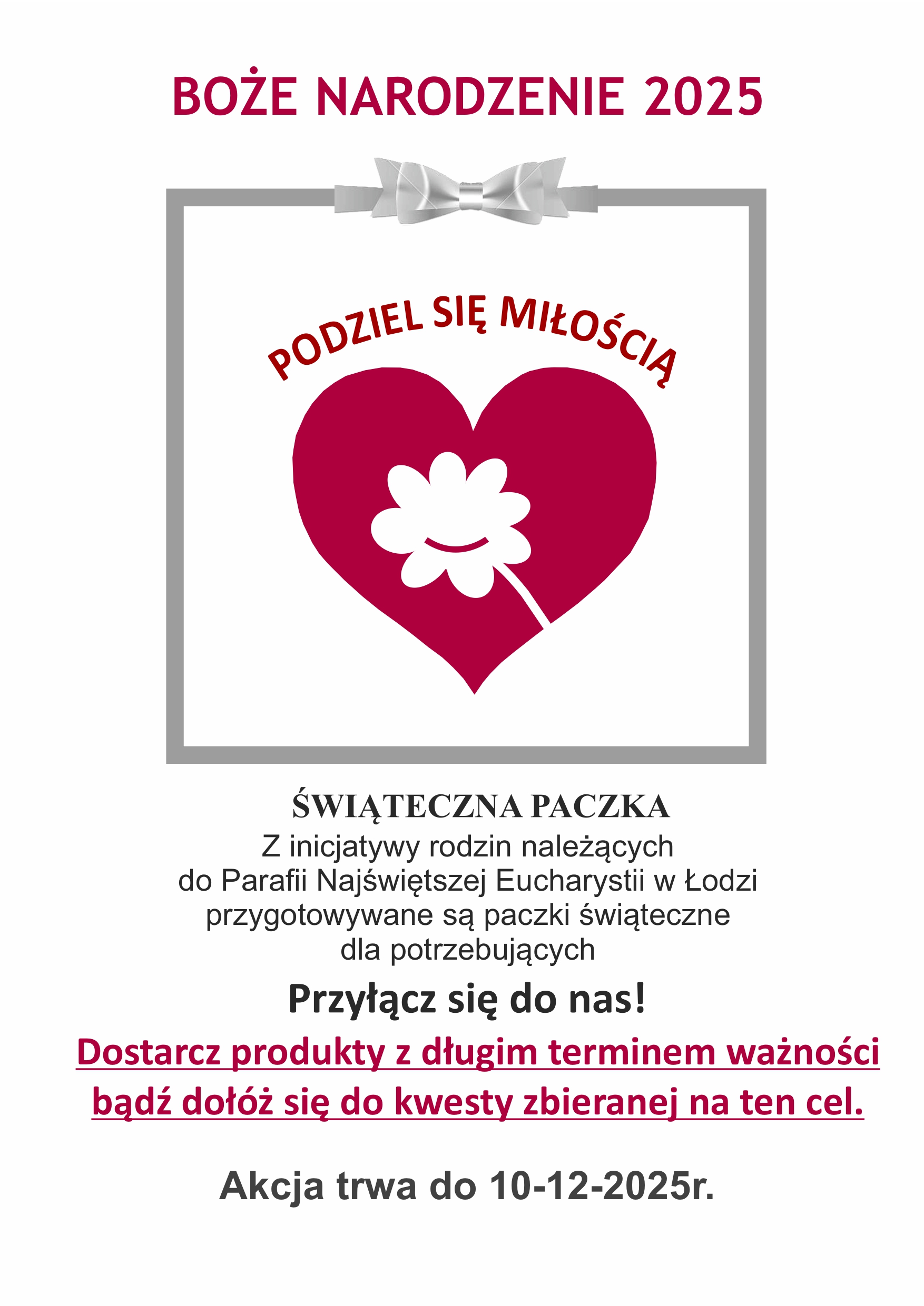 GŁÓWNA INTENCJA: “By Jezus zamieszkał w każdym łódzkim sercu” W dniu 28.06.2025 zapraszamy do modlitwy za Łódź i jej mieszkańców. Jak w poprzednich latach okrążymy Łódź jeżdżąc rowerami. W trakcie drogi i na przystankach będziemy się modlili. Dla rowerzystów obowiązują zapisy. Tych co nie mogą jeździć rowerem zapraszamy do przyjścia na jeden z przystanków przy […]